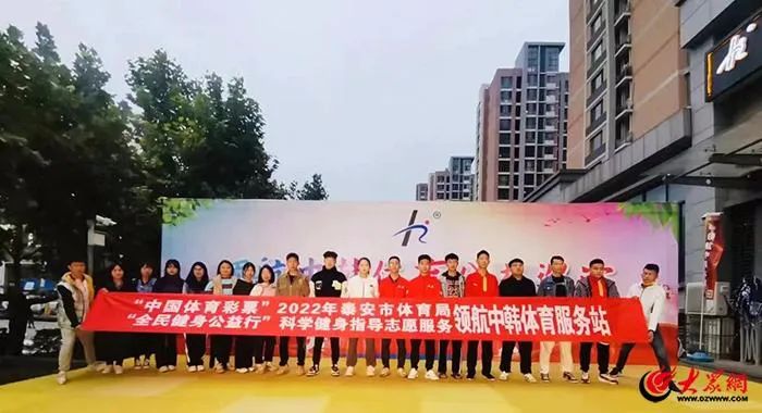 2022年,为积极响应泰安“全民健身公益行”科学健身指导志愿服务活动号召,领航中韩体育在泰山区范围内10个社区进行了10场“助力泰山区家门口运动会”消夏巡回演出,累计观看人数达6000余人,大大增强了群众的健身意识;在“社区家门口运动会”中,领航中韩体育为群众提供奖品、裁判员志愿服务等,广泛开展健身宣讲、体质监测、技能培训等形式多样的全民健身志愿服务。为方便群众在家门口就能有舒适的室内健身场所,领航中韩体育共提供10个站点加入开放式全民健身志愿服务站点。服务站共计开展志愿服务指导达1150余次,在全市120个服务站中排名第一。